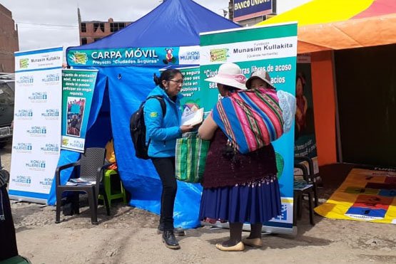 El proyecto de ONU Mujeres "Ciudades Seguras Contra el acoso sexual y violencia a mujeres del municipio de El Alto" es dependiente de la Fundación Munasim Kullakita, promueve un sistema de protección e integración social de niñas, adolescentes y mujeres garantizando la seguridad y bienestar en el marco de sus derechos. Los resultados que se pretenden alcanzar son: